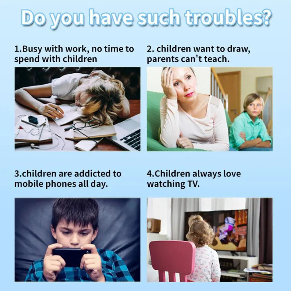 Interactive Painting Robots: Our interactive painting robots are great companions to stimulate children's imagination, turning playtime into innovative learning activities. This innovative toy is carefully crafted to improve skills such as hand-eye coordination, writing, drawing, problem solving and innovative thinking, making it an enjoyable educational experience. Easy to use: Have fun without any complicated Settings or applications. Our drawing robot has a simple design and user-friendly features to get kids started right away. Explore topics from the world to modes of transportation with 100 different drawing cards, 2 pens and 12 colored pens. Safe and strong: Your child's safety and happiness is our top priority. The drawing robot presents an attractive and engaging look while being made of quality materials. Its sturdy design ensures a safe play environment and gives you peace of mind as your children explore their artistic talents. Good quality: We are committed to the longevity and quality of our educational drawing robots. Please handle lottery cards with care to maintain their integrity. Make sure your child is constantly innovating. Thoughtful gift: This unique gift combines fun and educational value. Suitable for children 5 years and older, our drawing robots are ideal for promoting early artistic and cognitive development. It makes a thoughtful gift for Children's Day, birthdays, Christmas, or any special occasion that celebrates the joy of learning.